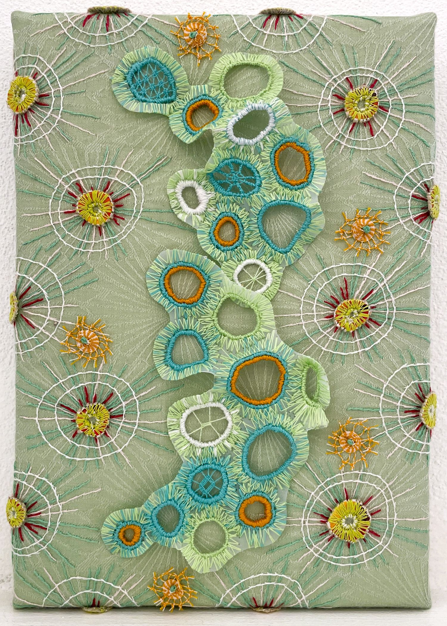 It was a lovely surprise to see my artwork 'Be Like Lichen' on the front cover of 'the embroiderers' life' (July 2025). I had three artworks on display in the Threading Lightly exhibition at Gallery 76 in Sydney at the time of its publication.